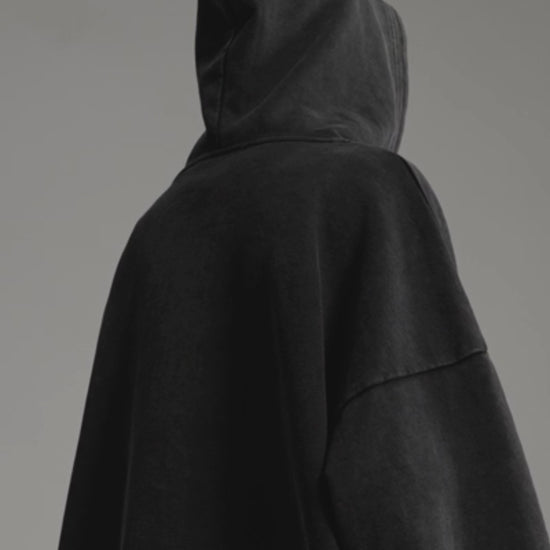 This oversized fit hoodie showcases the "PSN/OWN" embossed logo on the front, complemented by zippers around the sleeves and pockets.