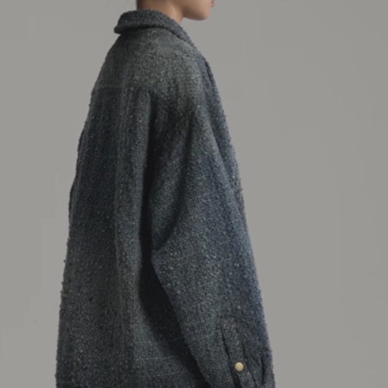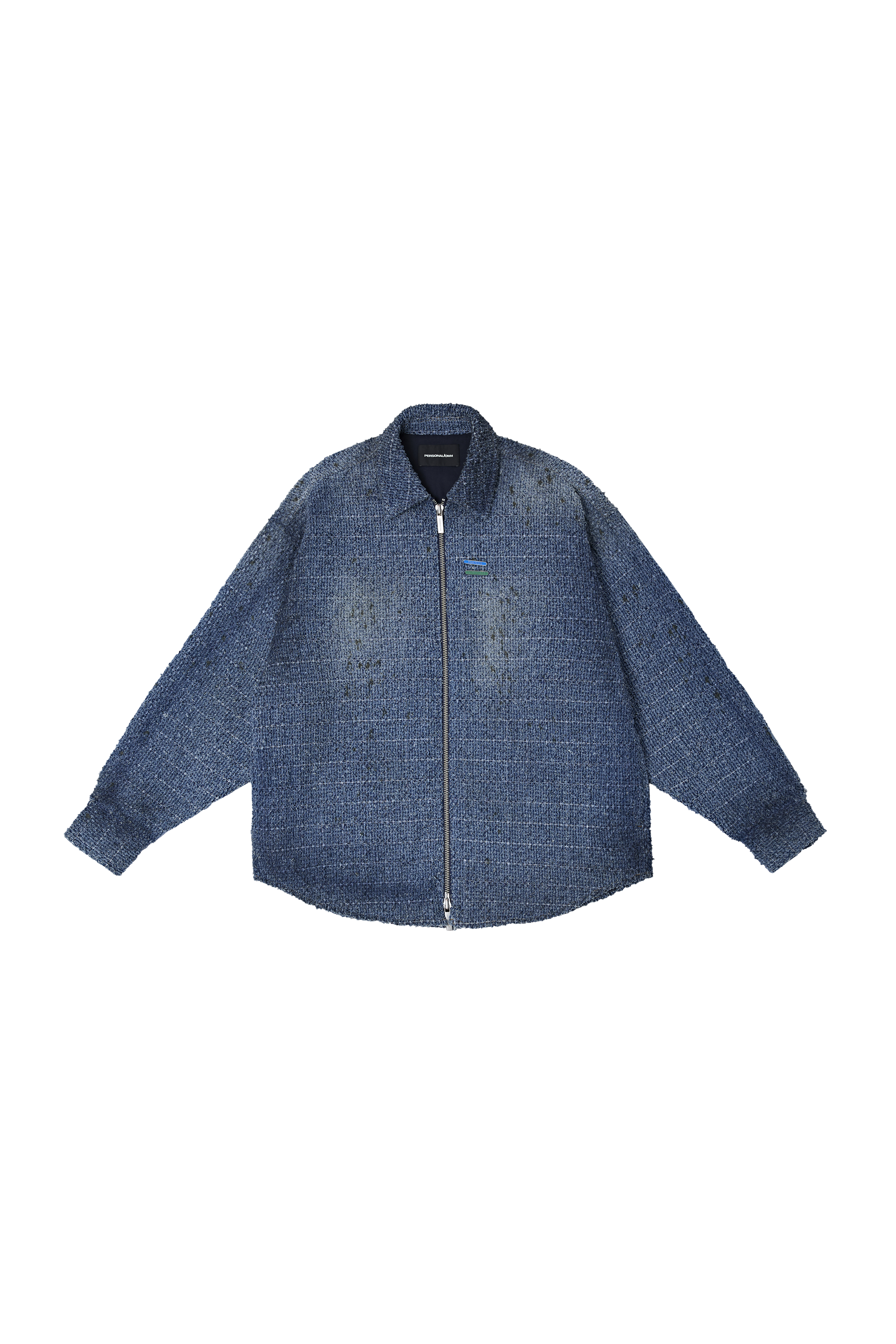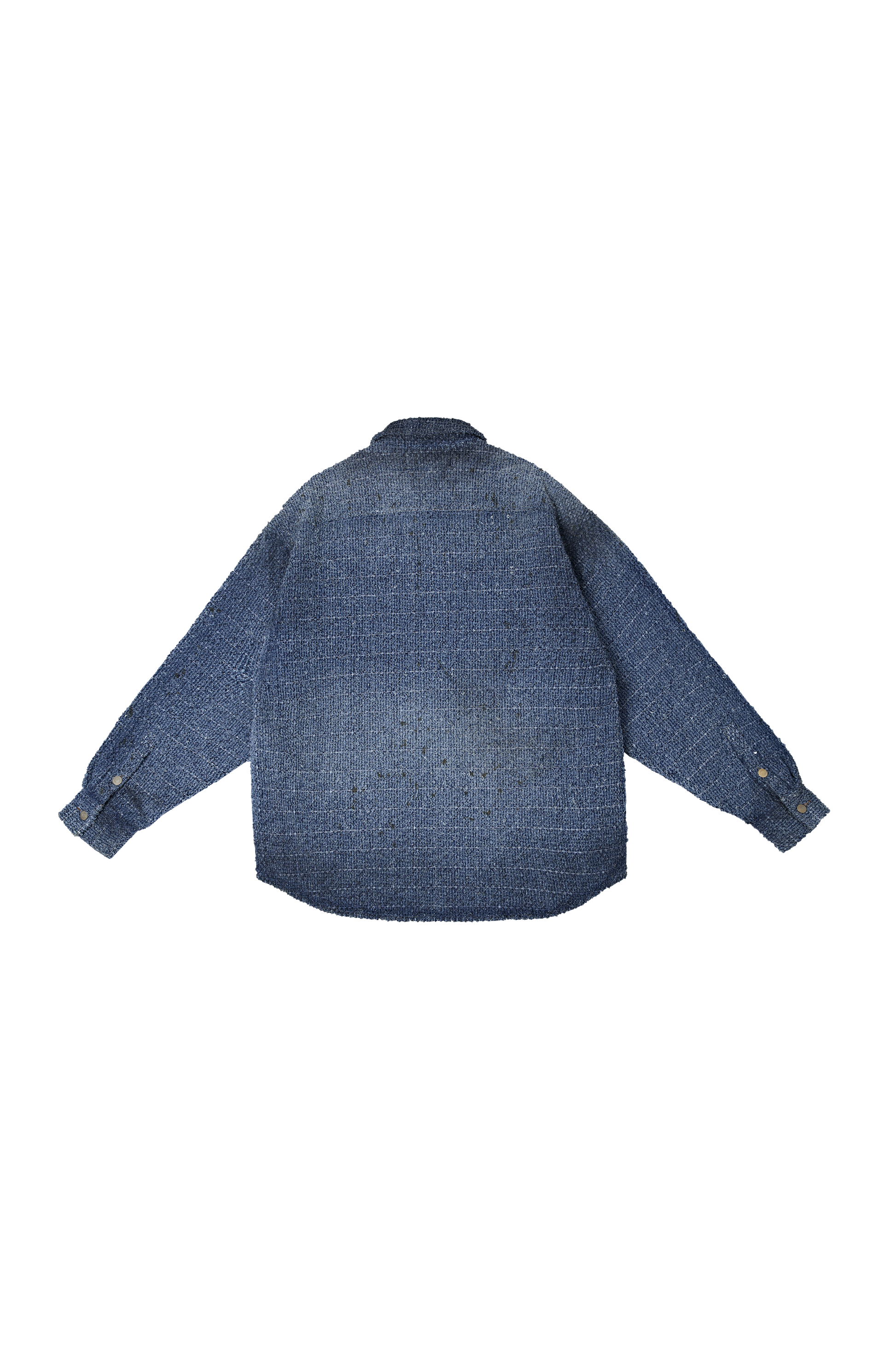This oversized denim jacket employs laser distressing and washing techniques to create texture.