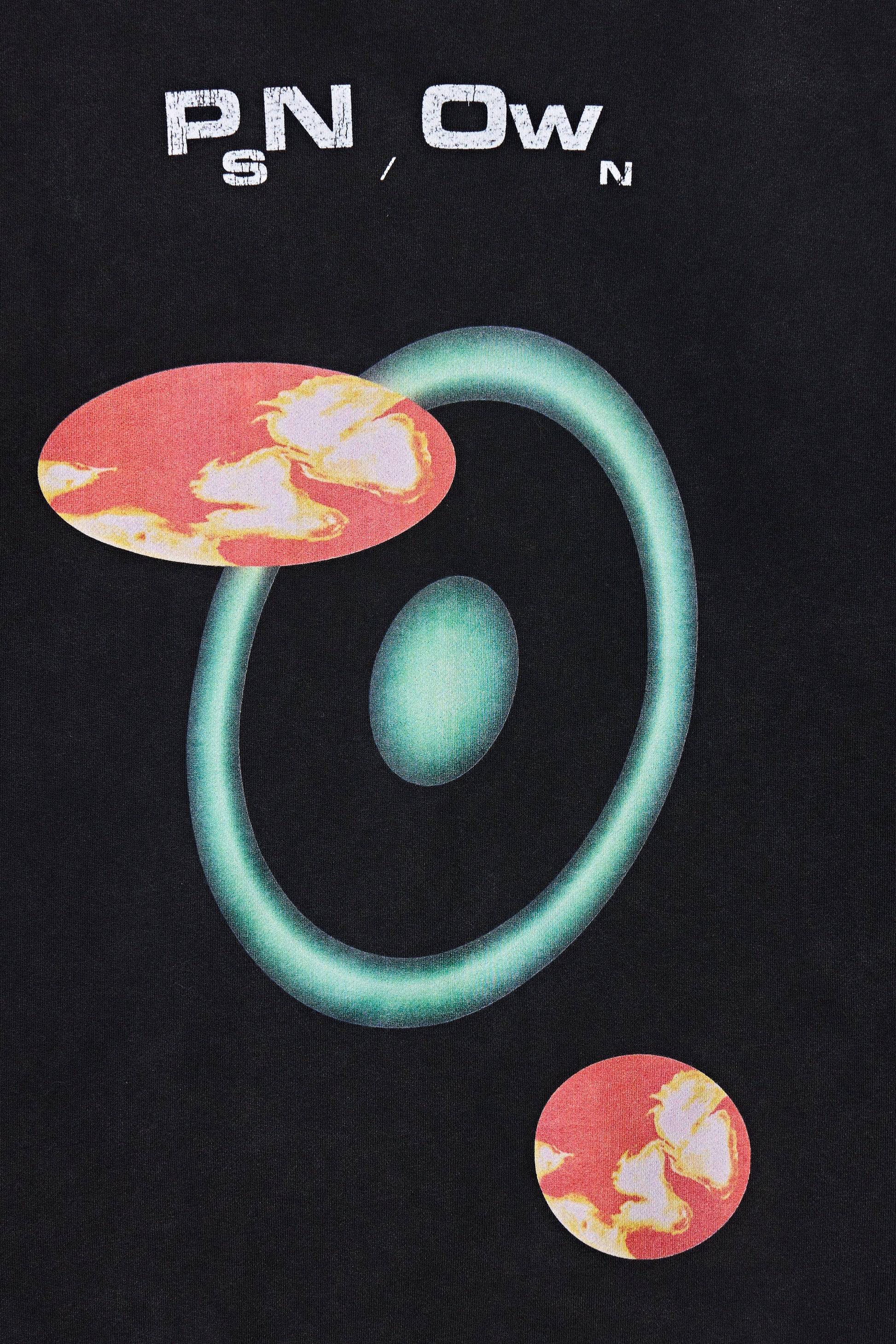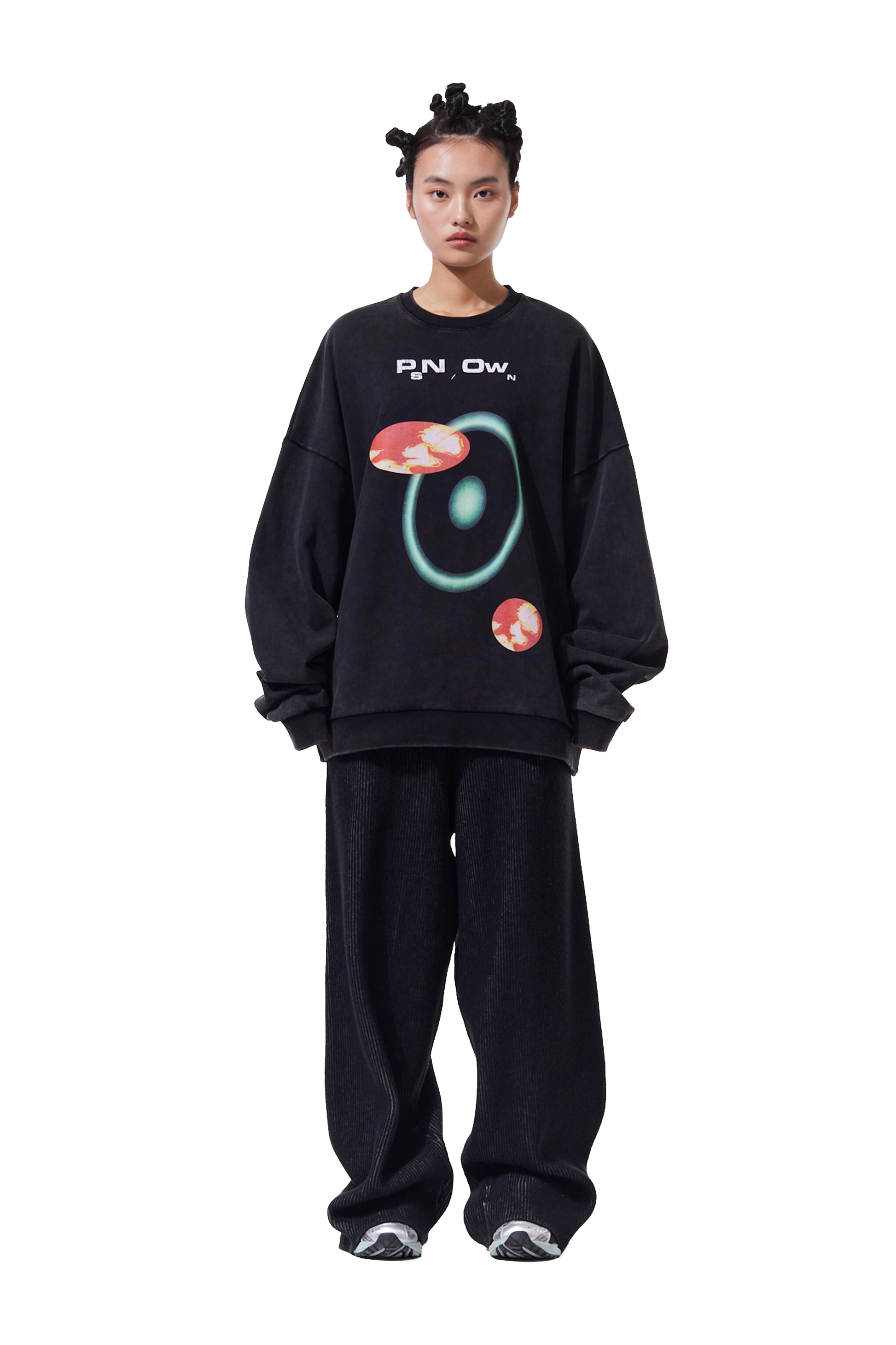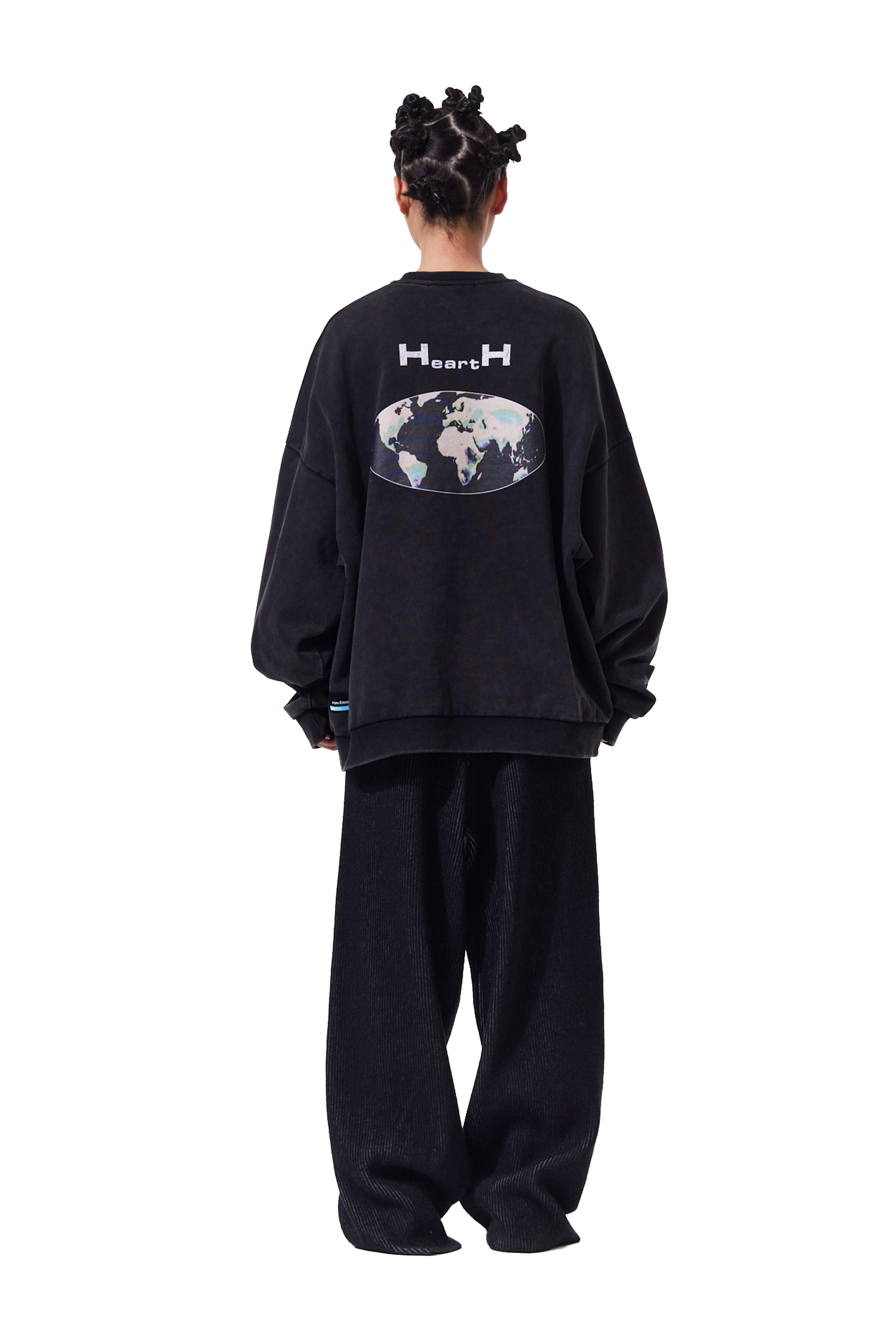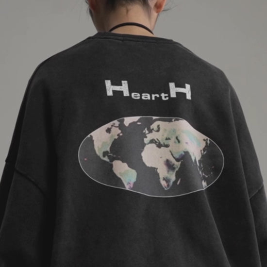 In an oversized fit, this crewneck boasts digital prints of "Flat Earth" and "HeartH" on both the front and back.