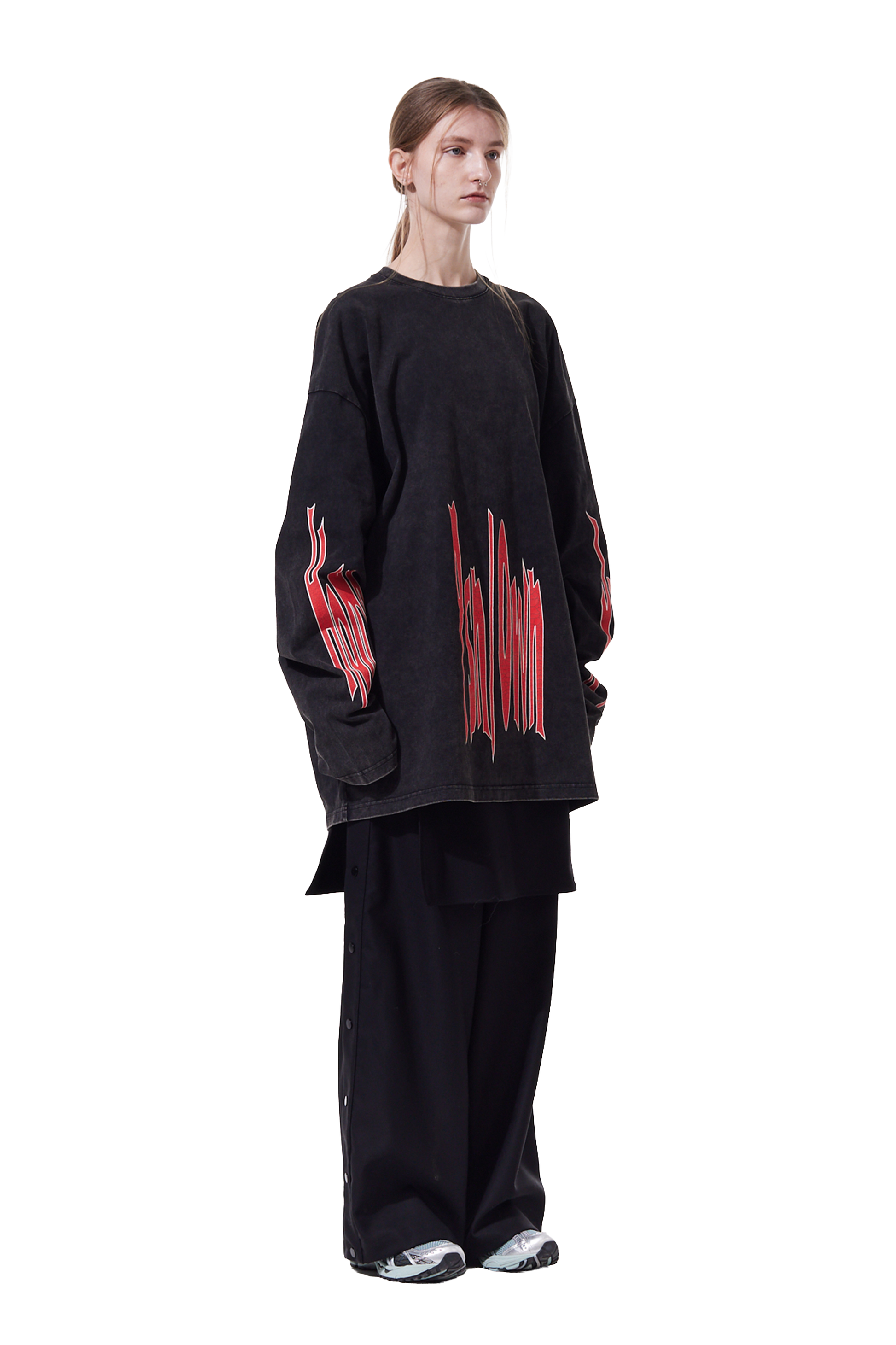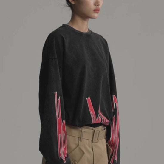 With a classic standard fit, this long sleeve tee features cracked screen print artwork along the sleeve also on both the front and back.